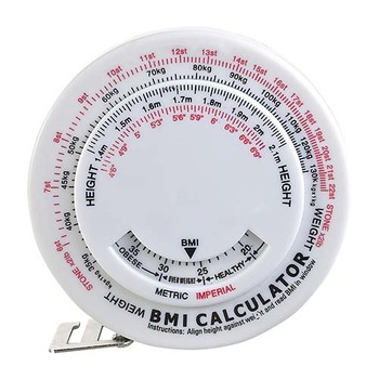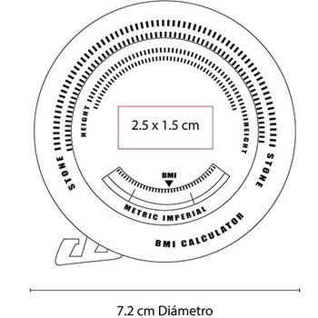 Cinta medidora de masa corporal. 150 cm de longitud. Plástico. Medida: 7.2 cm de diámetro. Color ubico.
