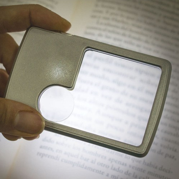 Lupa rectangular con doble lente y luz